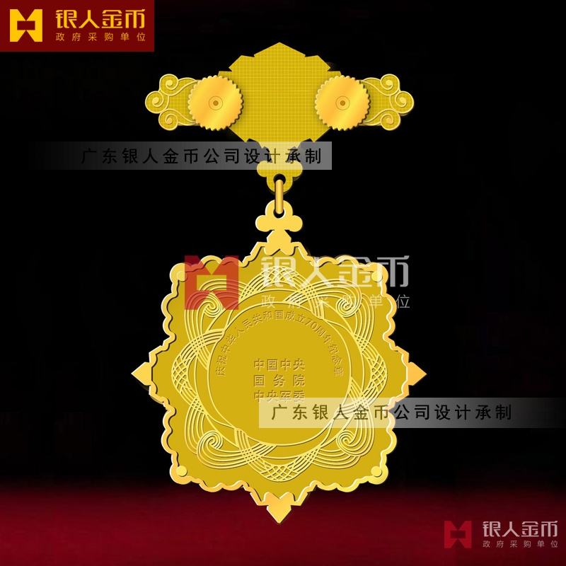 可以按客戶的要求、自定獎章勛章大小尺寸標準規格、色彩要求、形狀要求、材料要求、獎章制作工藝要求、勛章制作方法要求生產訂做各種黨政軍機關、政府單位的純金獎章、純金勛章、鍍金獎章、鍍金勛章、純銀獎章、純銀勛章、高檔獎章、高檔勛章、精美獎章、精美勛章。