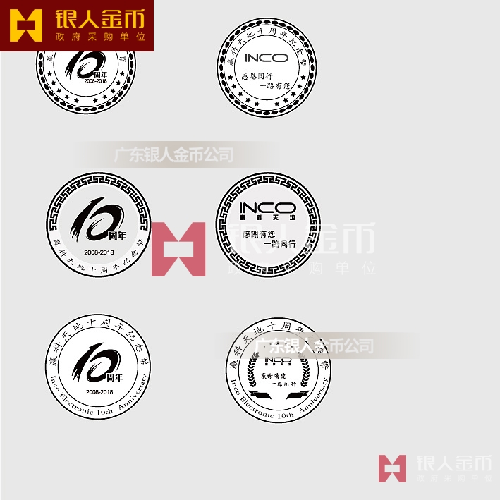 3、 紀念幣與紀念章的正面(前面)設計并使用上公司企業或單位年慶慶典的典禮慶賀紀念徽標藝術LOGO標志。