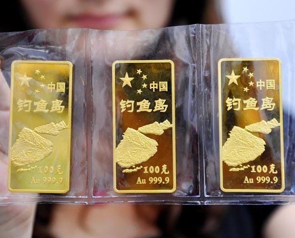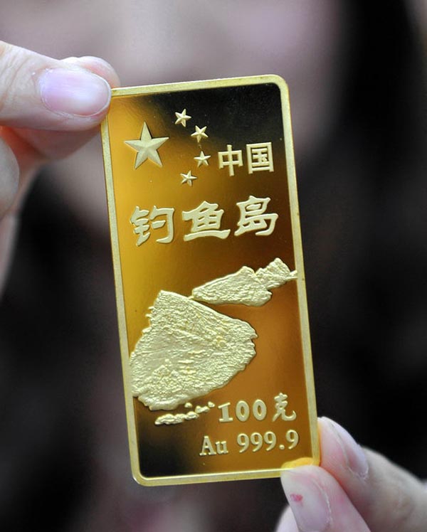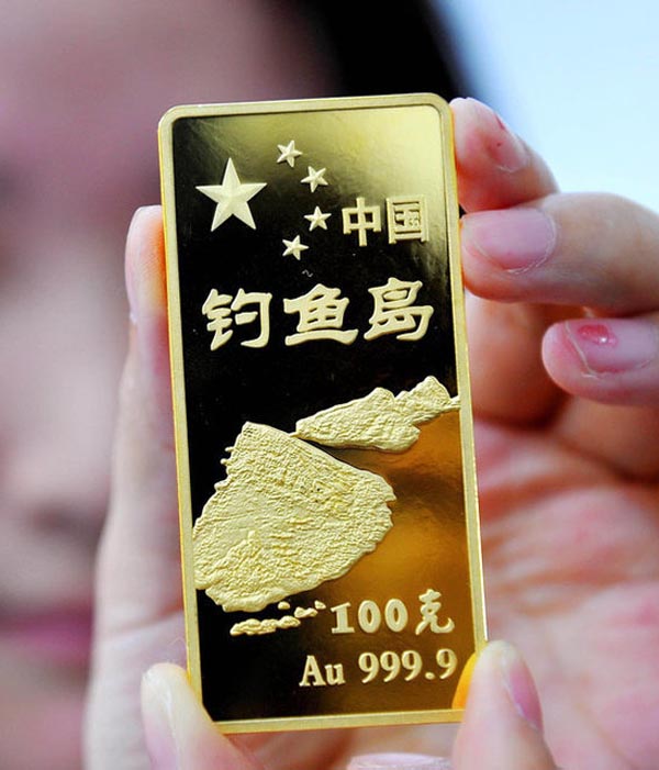 國(guó)內(nèi)首款黃金金條以釣魚島命名的黃金制品、“中國(guó)釣魚島金條”入市面世,最重的100克 最輕的只有1克。