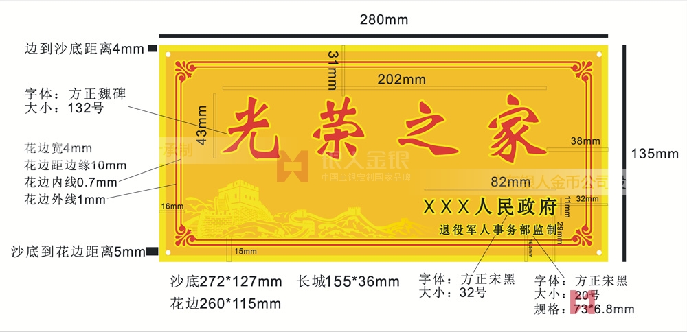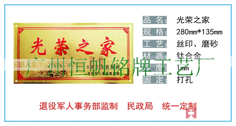 退役軍人事務(wù)部/政府部門(mén)民政廳統(tǒng)一懸掛安裝光榮之家牌匾/光榮牌制作標(biāo)準(zhǔn)規(guī)格尺寸技術(shù)參數(shù)生產(chǎn)廠家