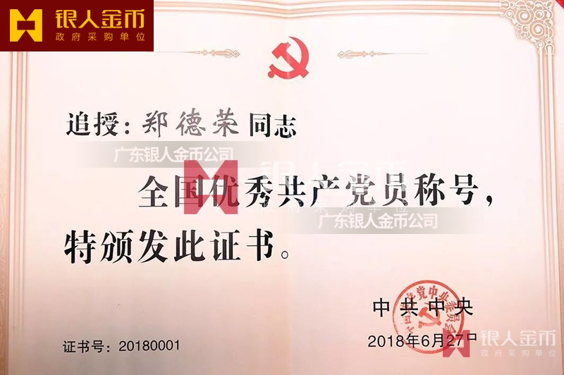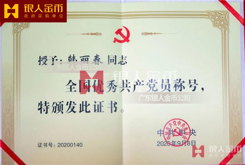 中共中央/中組部2020年“全國優(yōu)秀共產(chǎn)黨員”稱號獎章、獎牌、證書(實物)