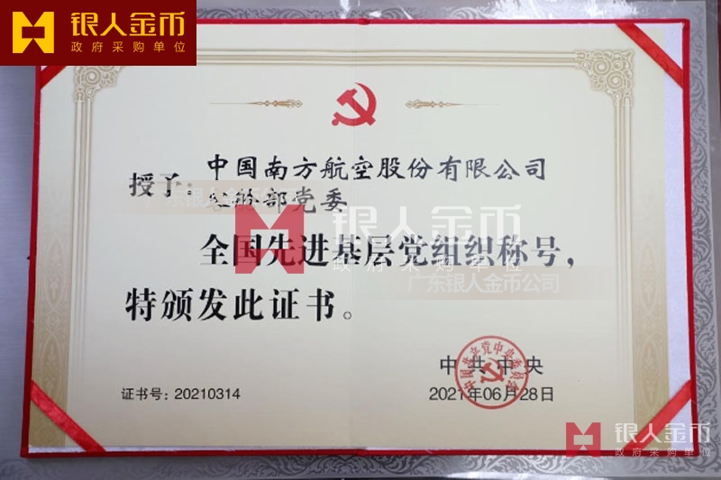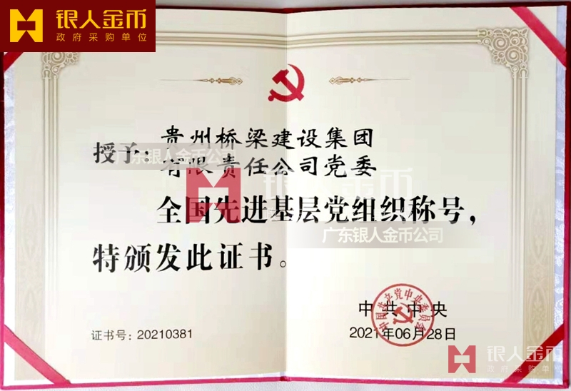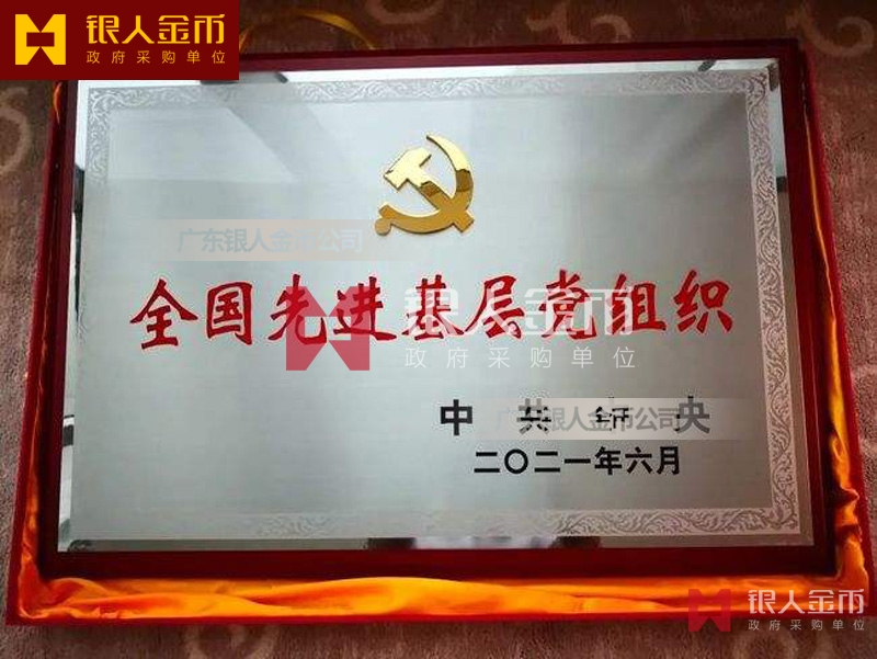 中共中央2021年度全國先進基層黨組織獎牌、全國先進基層黨組織證書、全國先進基層黨組織牌匾