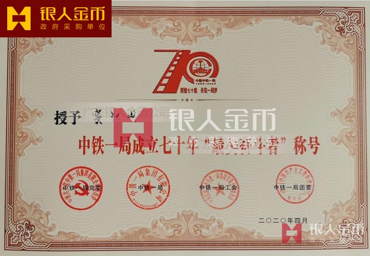 國有企業中鐵一局建局70周年紀念章最美奮斗者獎章定制(圖)