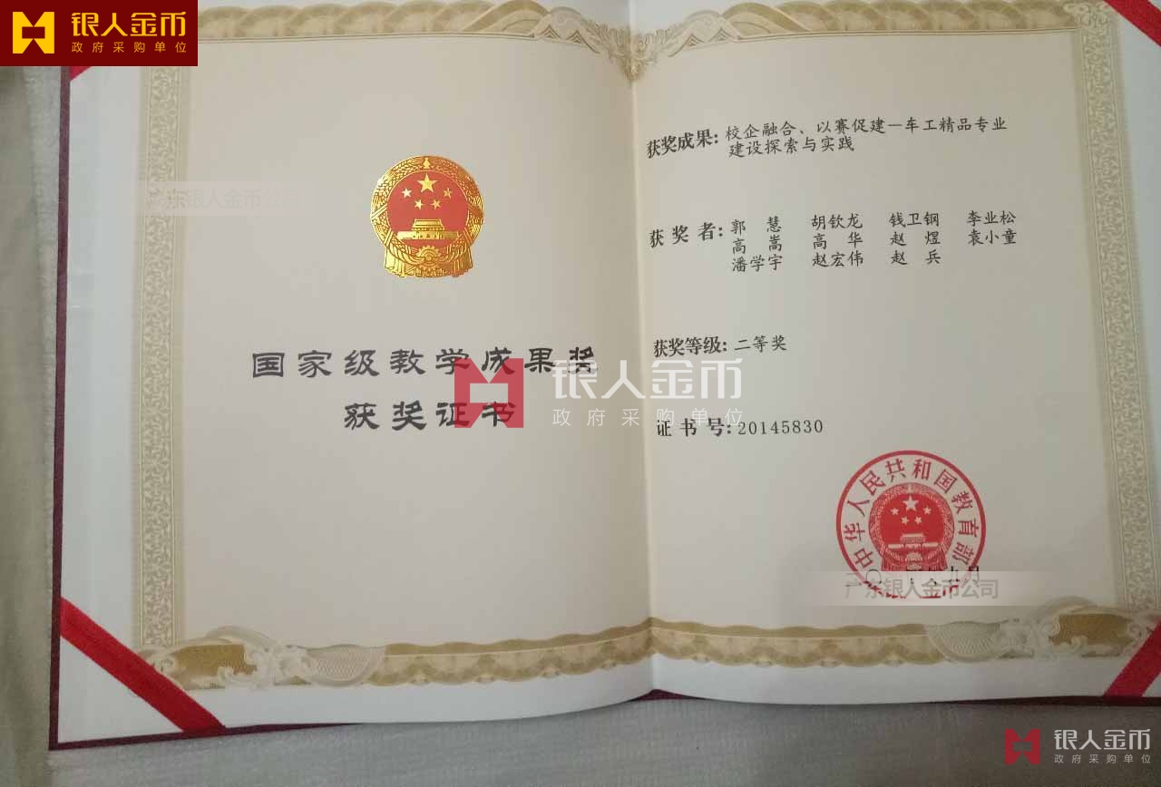 教育部國家級高等教育教學成果獎和全國教材先進集體獎牌獎章證書(圖)全國普通高等學校優秀教材一等獎獲獎證書獎牌
