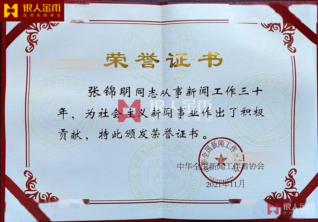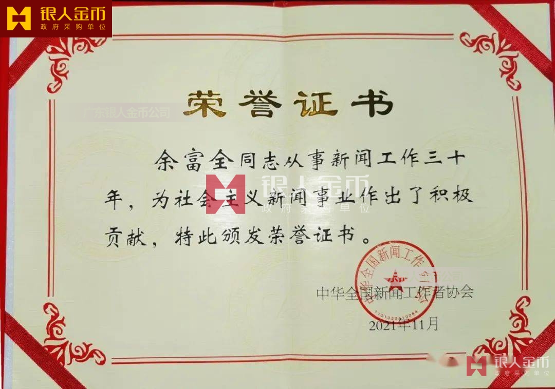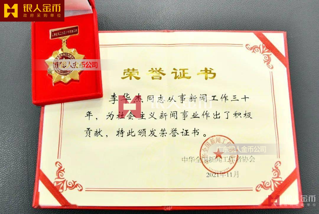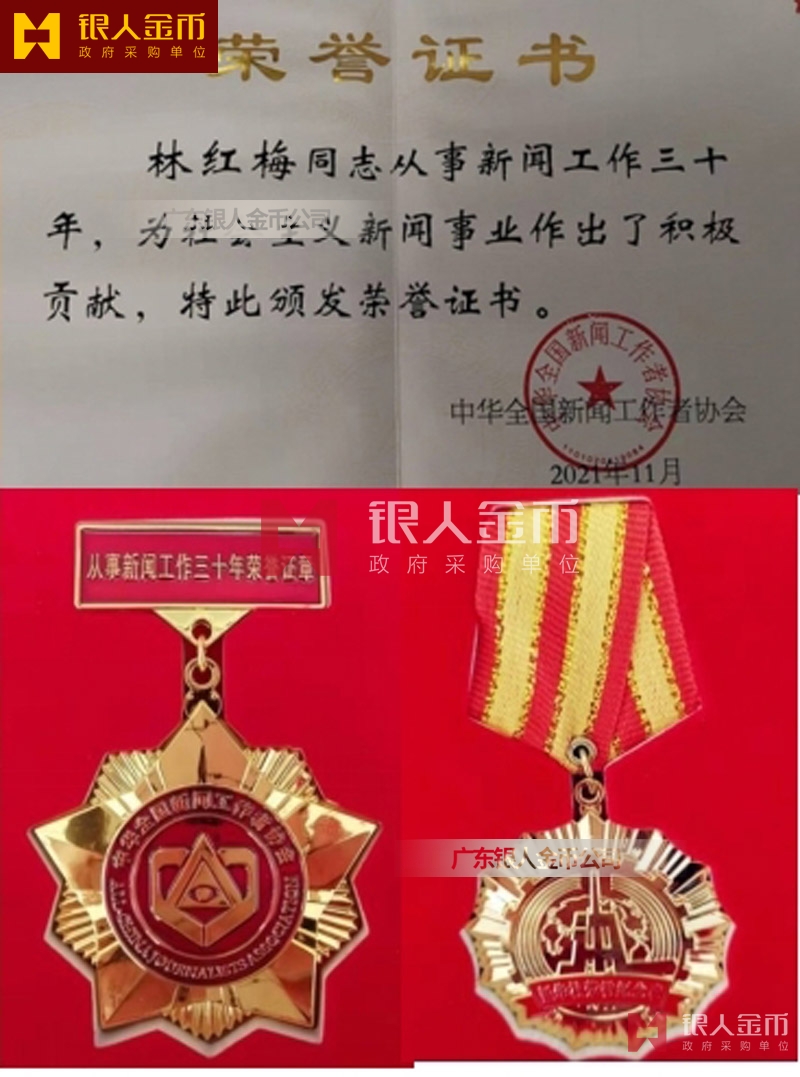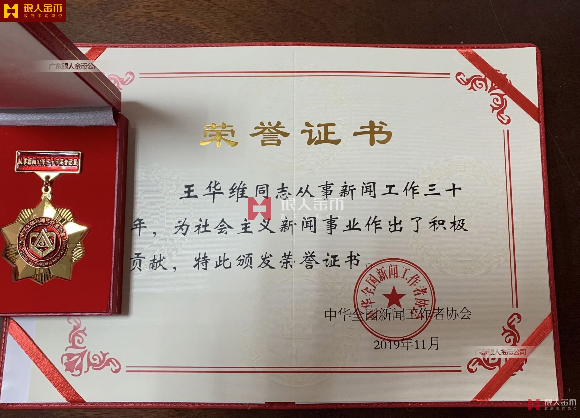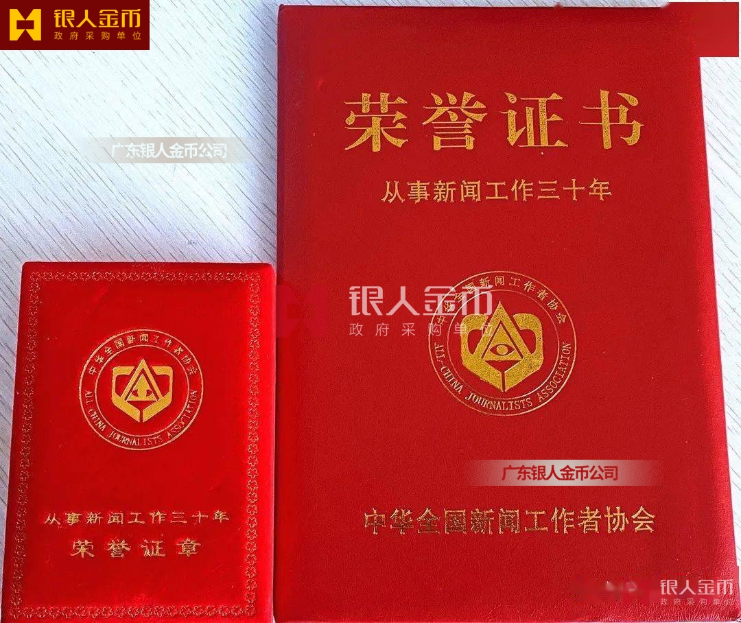從事新聞工作三十年以上的采編人員榮獲由中華全國新聞工作者協會頒發的“從事新聞工作三十年”榮譽證書和證章