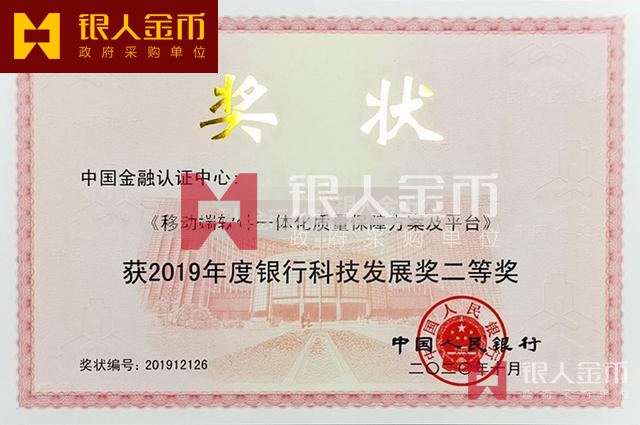 中國人民銀行年度“銀行科技發(fā)展獎”榮譽證書獎勵證書獎狀及獎牌獎?wù)伦C章徽章紀(jì)念章(圖)