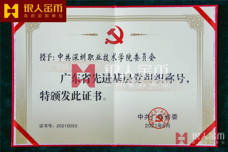 中共廣東省委、省委組織部兩優一先:優秀共產黨員獎章和優秀黨務工作者勛章及先進基層黨組織獎牌牌匾證書(制作標準)-【廣東銀人徽章廠有限公司】