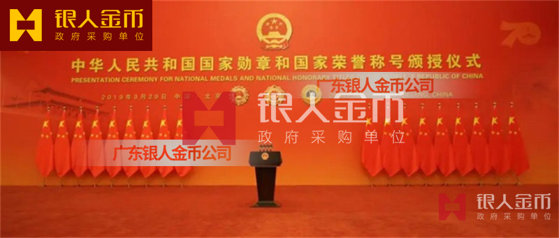 2019年,國慶七十周年之際,中宣部委派中央電視臺授權廣東銀人金幣公司為國慶70周年紀念章設計制造單位。過去社會上常常把金幣公司這個行業稱為“三特”行業,指的是“生產特殊產品的、實行特殊管理的特殊行業”。