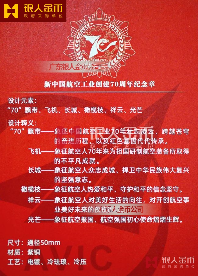 新中國航空工業創建70周年紀念章制作設計定制訂制說明