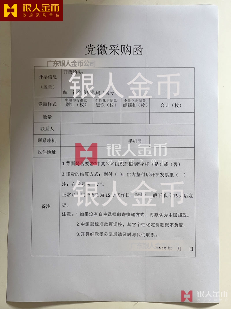 6、各地省委、市委表彰獎勵、重大活動所需,須憑各地黨委、政府單位、組織部、宣傳部出具公函指定生產;