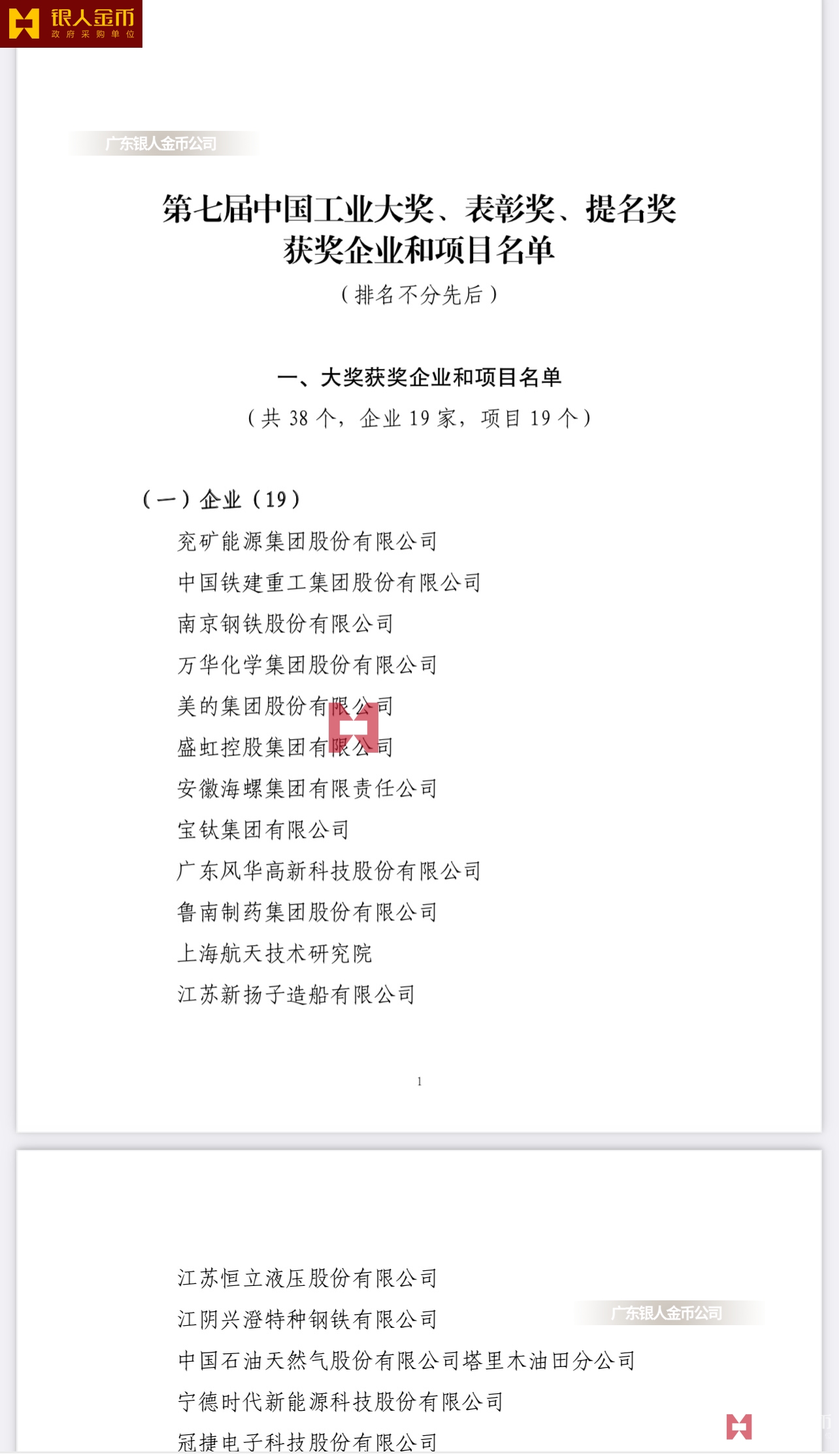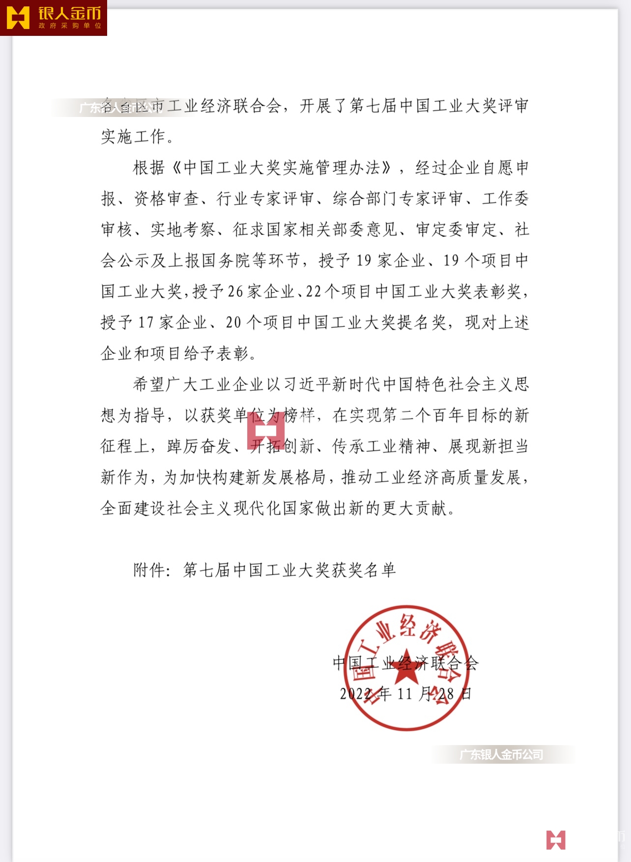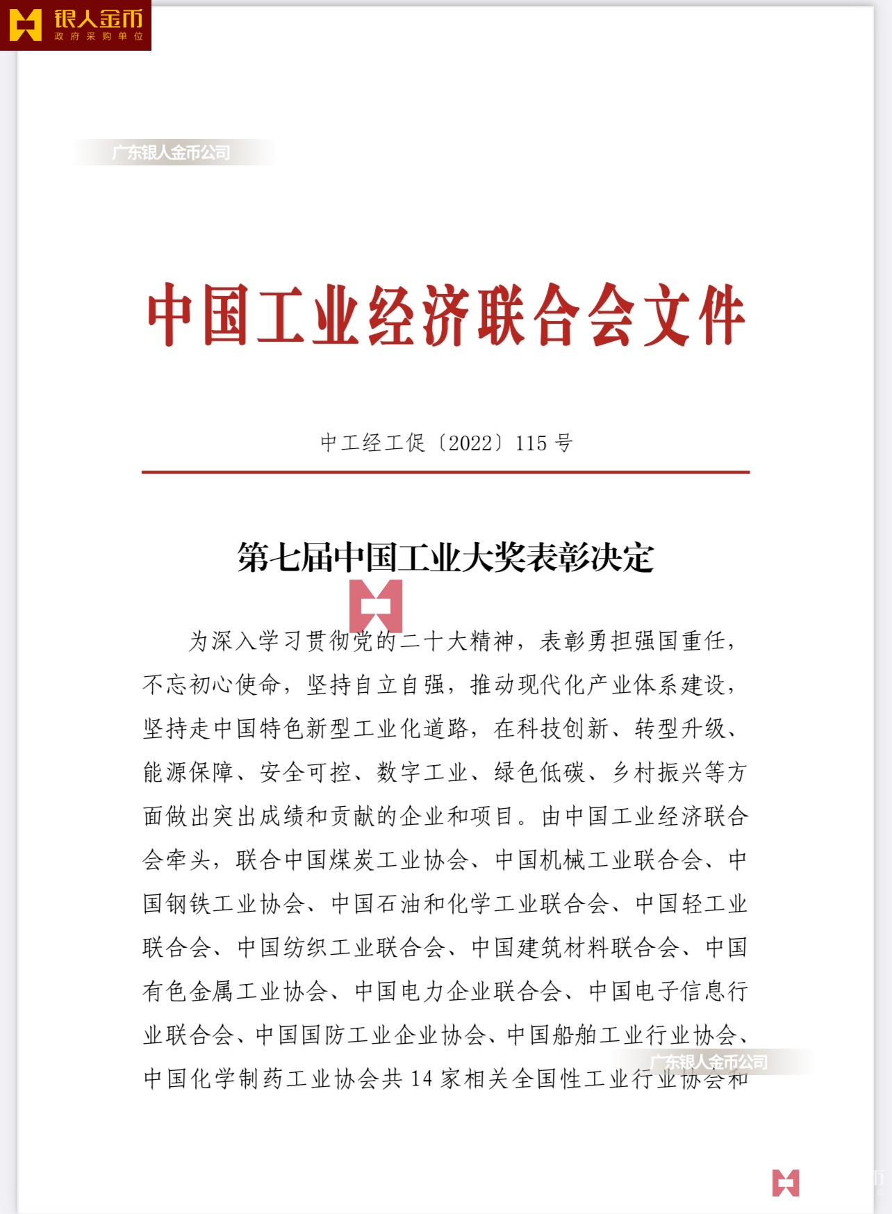 中國工業大獎是2004年經國務院批準設立的我國工業領域最高獎項,被譽為中國工業的“奧斯卡”。該獎項為表彰堅持科學發展觀、走中國特色新型工業化道路,代表我國工業化的方向、道路和精神,代表工業發展最高水平,在科技創新、轉型升級、能源保障、綠色低碳等方面表現卓越,對增強綜合國力、推動國民經濟發展做出重大貢獻的工業企業和項目。