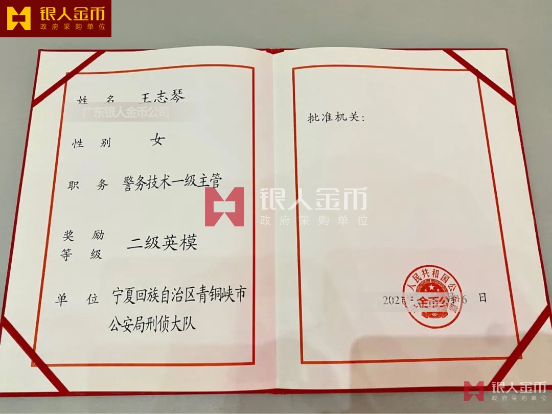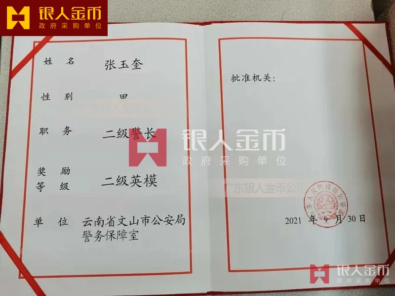 公安部“全國(guó)公安系統(tǒng)一二級(jí)英雄模范” 獎(jiǎng)?wù)伦C書(圖)-【廣州銀人勛章獎(jiǎng)?wù)录o(jì)念章證章廠家有限公司】