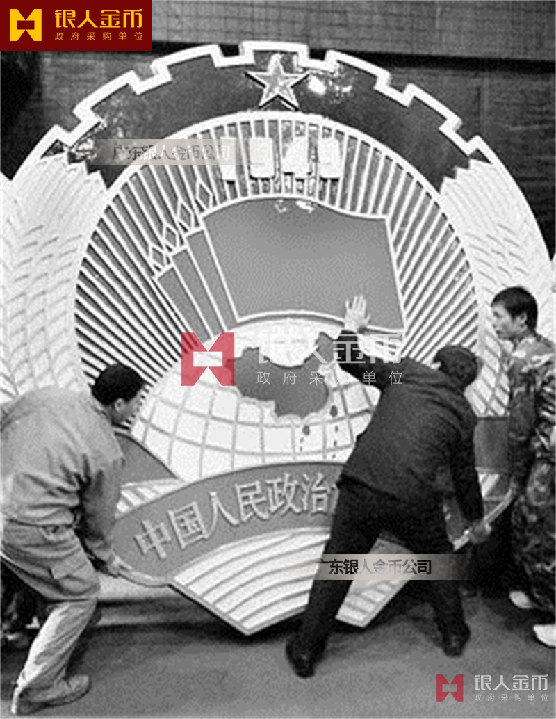 國徽訂做、國徽生產、國徽批發、國徽制作、國徽銷售、國徽設計、國徽制做、國徽定做、國徽制造、國徽加工、國徽零售我們做為一個對人民和政府負責任的企業,用精湛的工藝來報答人民服務忠于國家和人民的群體,用專業來服務,【廣州天河徽章廠】制作大型標志徽章是嚴格按照《中華人民共和國國徽標準[GB15093-94]的規定制作,公安警徽按照《人民警察警徽技術標準》[GA244-2000]制作,其他標志制作按照國徽標準來制作。是采用高強度輕鋁合金為材料,并采用先進的浸透壓延鑄造技術,高光澤靜電均布式噴烤漆和先進貼金工藝,掛徽表面噴涂進口透明防腐蝕漆加以保護。具有重量輕,高強度,拒風雨抗日曬,色彩鮮艷,永不褪色的特點。高光澤靜電均布式噴烤漆和先進貼金工藝,掛徽表面噴涂進口透明防腐蝕漆加以保護。具有重量輕,高強度,拒風雨抗日曬,色彩鮮艷,永不褪色的特點。是會議室、禮堂、辦公大樓、機關大院等重要場所的必備標志 為全國顧客提供訂做、生產、批發、制作、銷售、設計、制做、定做、制造、加工、零售等各種形式的服務。如果你有以下疑問:大型國徽哪里有賣、國徽那里可以制作、國徽在哪里能買到、國徽哪能買到、國徽如何買到、國徽哪里可以買到、國徽現貨哪里可以買到、國徽哪里能買到、國徽哪里有出售、國徽哪有賣、有制作有做國徽的廠子、國徽那里能買到、國徽有賣、國徽多少錢,廣東銀人將為你一一解答,國徽制造企業制作訂購,【廣州徽章廠】大型掛徽標的生產工藝流程一般為:制作模具、澆筑、拋光、上漆、烤漆/貼金。我廠由于經營多年,常見的標志各種規格模具齊全,常見標志一般都有現貨。大型掛徽的常見規格有:40公分、50公分、60公分、70公分、80公分、90公分、1米、1.2米、1.4米、1.5米、1.8米、2米、2.5米、3米、3.5米等。