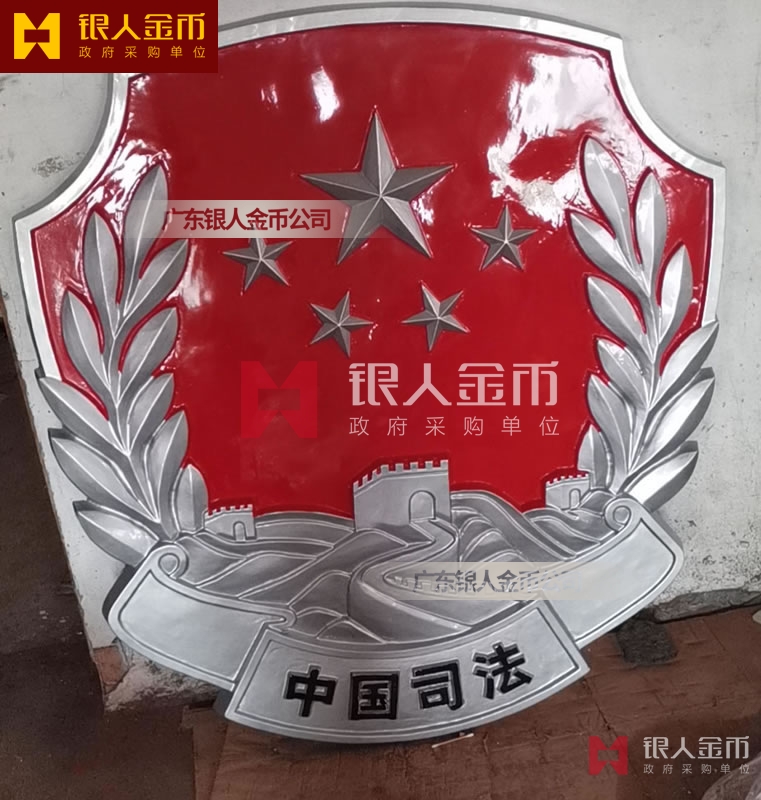 大型戶外大樓室內禮堂懸掛人大政協會徽軍警稅務司法工會交通安監質監檢疫法院檢察院徽標生產定制制造【廣州銀人徽章廠制作公司】
