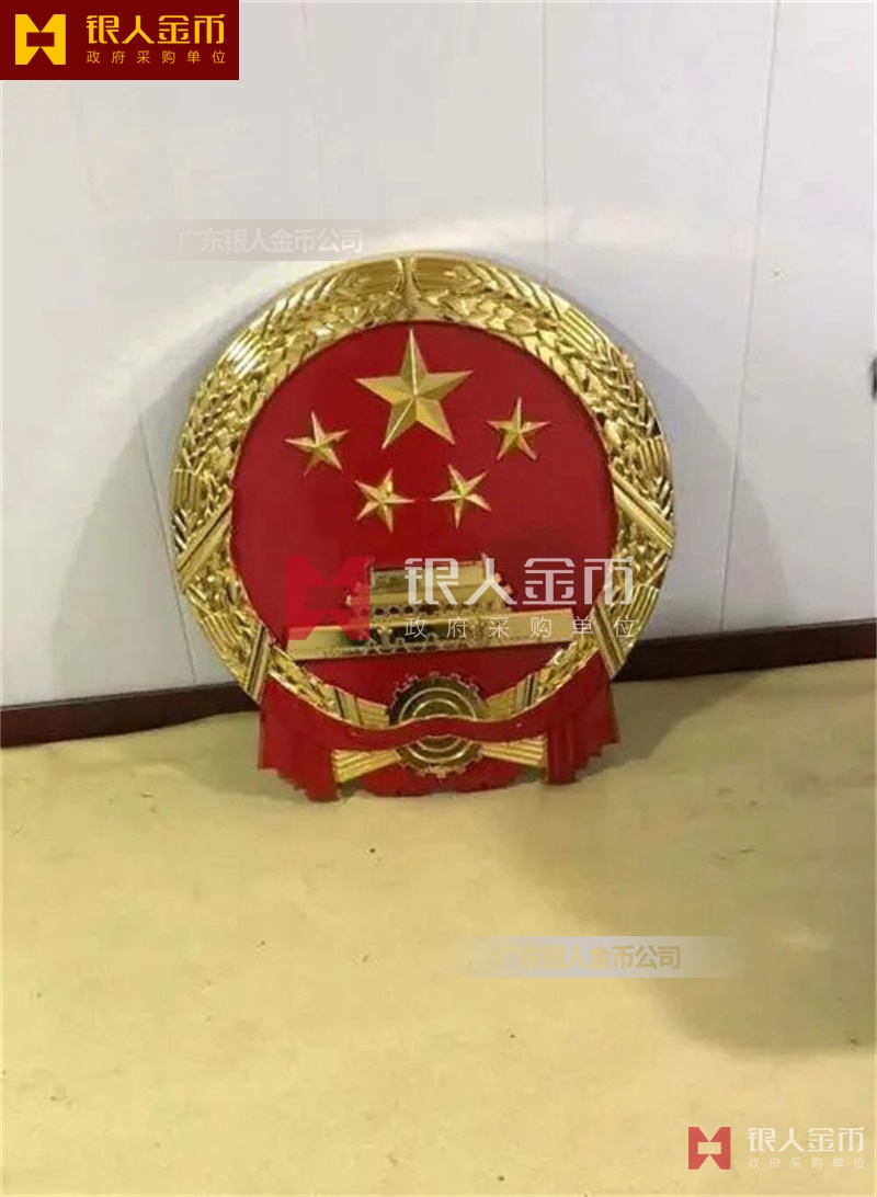 國徽訂做、國徽生產、國徽批發、國徽制作、國徽銷售、國徽設計、國徽制做、國徽定做、國徽制造、國徽加工、國徽零售我們做為一個對人民和政府負責任的企業,用精湛的工藝來報答人民服務忠于國家和人民的群體,用專業來服務,【廣州天河徽章廠】制作大型標志徽章是嚴格按照《中華人民共和國國徽標準[GB15093-94]的規定制作,公安警徽按照《人民警察警徽技術標準》[GA244-2000]制作,其他標志制作按照國徽標準來制作。是采用高強度輕鋁合金為材料,并采用先進的浸透壓延鑄造技術,高光澤靜電均布式噴烤漆和先進貼金工藝,掛徽表面噴涂進口透明防腐蝕漆加以保護。具有重量輕,高強度,拒風雨抗日曬,色彩鮮艷,永不褪色的特點。高光澤靜電均布式噴烤漆和先進貼金工藝,掛徽表面噴涂進口透明防腐蝕漆加以保護。具有重量輕,高強度,拒風雨抗日曬,色彩鮮艷,永不褪色的特點。是會議室、禮堂、辦公大樓、機關大院等重要場所的必備標志 為全國顧客提供訂做、生產、批發、制作、銷售、設計、制做、定做、制造、加工、零售等各種形式的服務。如果你有以下疑問:大型國徽哪里有賣、國徽那里可以制作、國徽在哪里能買到、國徽哪能買到、國徽如何買到、國徽哪里可以買到、國徽現貨哪里可以買到、國徽哪里能買到、國徽哪里有出售、國徽哪有賣、有制作有做國徽的廠子、國徽那里能買到、國徽有賣、國徽多少錢,廣東銀人將為你一一解答,國徽制造企業制作訂購,【廣州徽章廠】大型掛徽標的生產工藝流程一般為:制作模具、澆筑、拋光、上漆、烤漆/貼金。我廠由于經營多年,常見的標志各種規格模具齊全,常見標志一般都有現貨。大型掛徽的常見規格有:40公分、50公分、60公分、70公分、80公分、90公分、1米、1.2米、1.4米、1.5米、1.8米、2米、2.5米、3米、3.5米等。