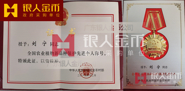 國家農業農村部“全國植物新品種保護先進個人”榮譽勛章榮譽獎章榮譽獎牌紀念章證書(圖)