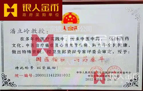 廣東銀人金幣公司經中國人民銀行批準,頒發《經營流通人民幣許可證》、國家市場監管相關部門核準。