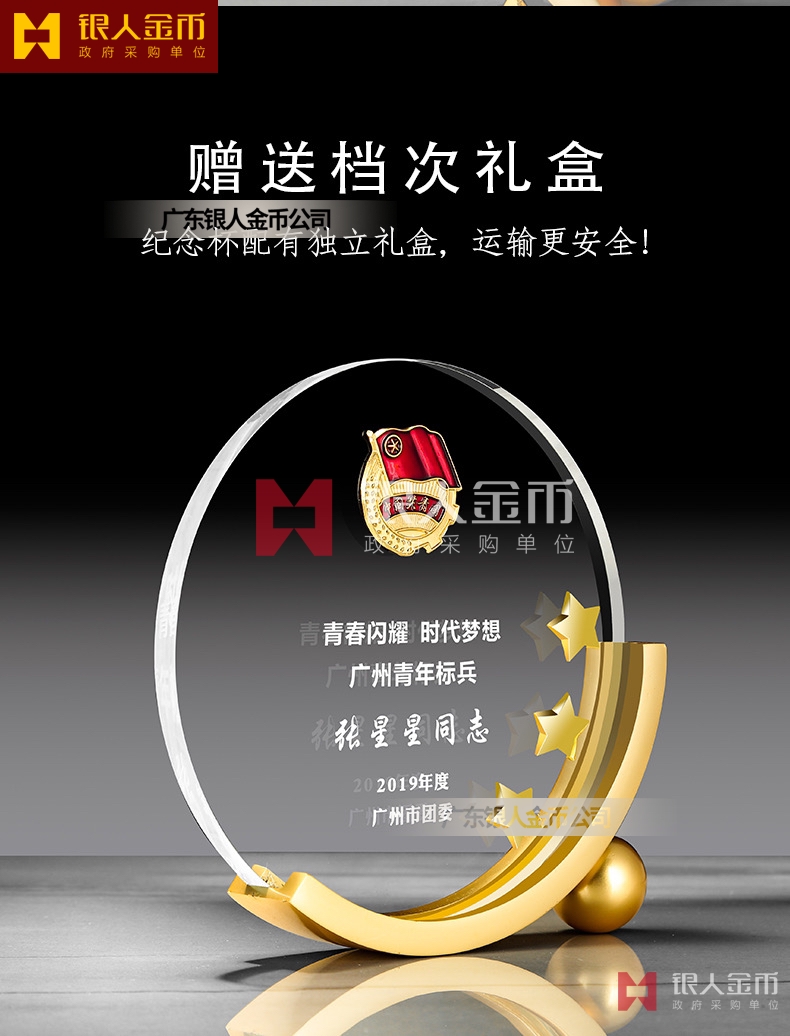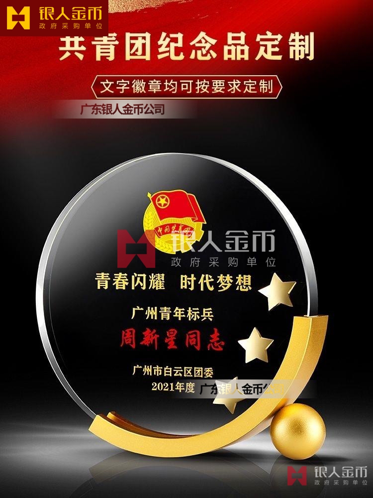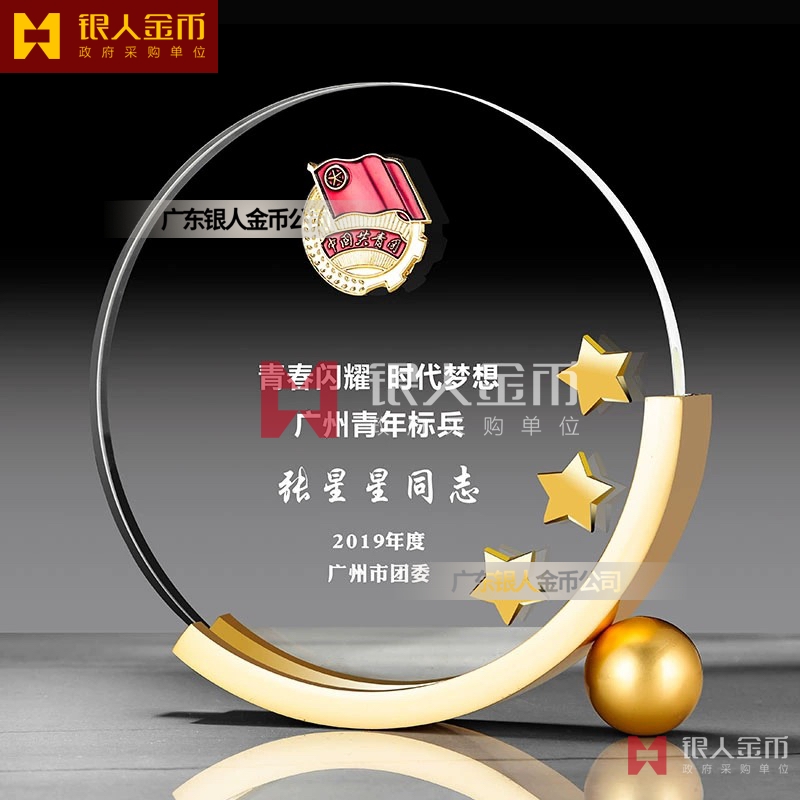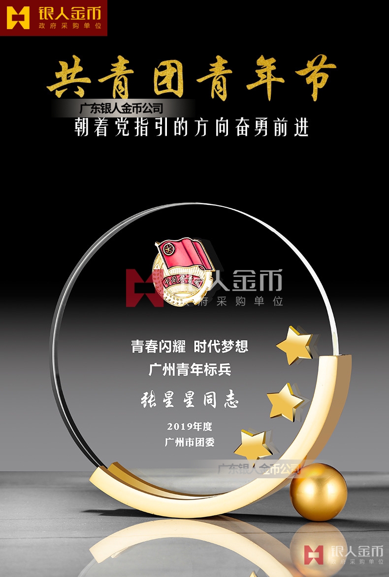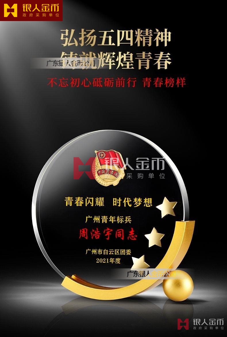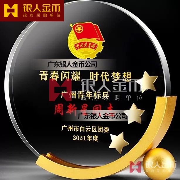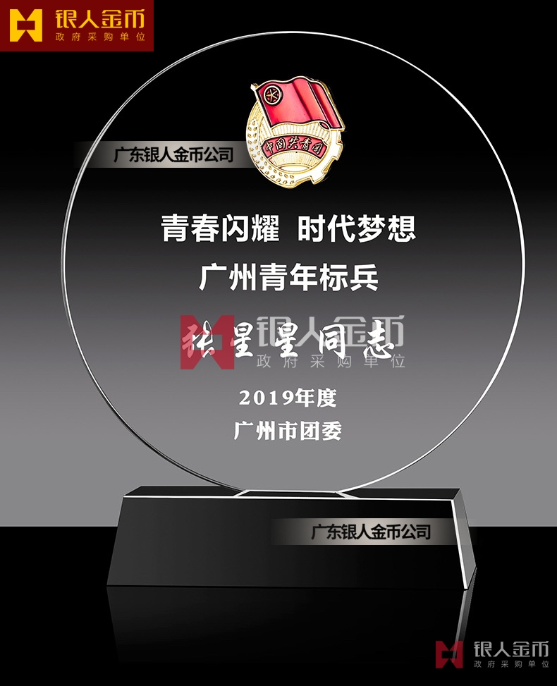 共青團(tuán)廣州市委員會五四青年標(biāo)兵優(yōu)秀團(tuán)員水晶擺件獎牌水晶獎牌水晶紀(jì)念牌制作定制-【廣東銀人徽章獎牌廠有限公司】