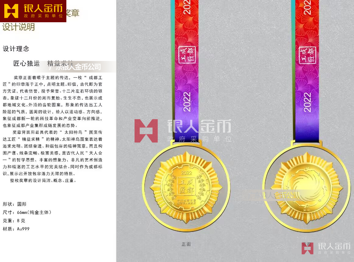 中共成都市委市政府“成都工匠”金質獎章制作,純金獎牌定做純金獎章訂制與證書定制(圖)