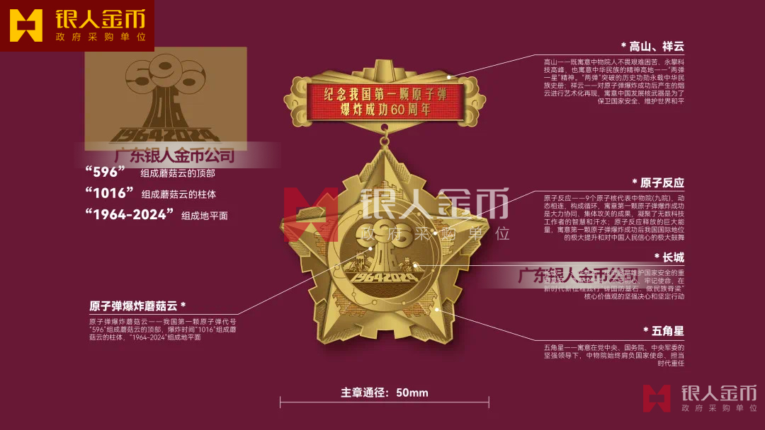 中國核工業集團有限公司:“兩彈一星"功勛章精神:我國第一顆原子彈爆炸成功60周年紀念章、獎章、獎牌、勛章、證章(圖)
