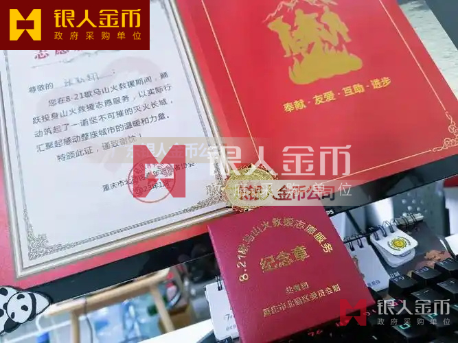 中共重慶市北碚區(qū)委頒發(fā)歇馬山火救援志愿服務(wù)榮譽紀念獎?wù)录皹s譽紀念章(圖)