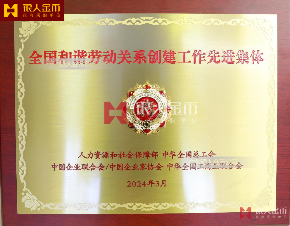 全國(guó)和諧勞動(dòng)關(guān)系創(chuàng)建工作先進(jìn)集體”稱號(hào)獎(jiǎng)牌、證書
