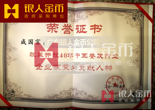 改革開放40年中國餐飲行業企業家突出貢獻獎金質獎章獎牌證書(圖)