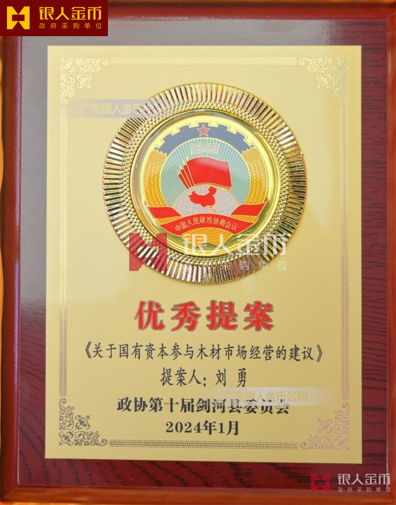 貴州省黔東南苗族侗族自治州政協優秀政協委員優秀提案獎牌紀念牌牌匾證書(圖)