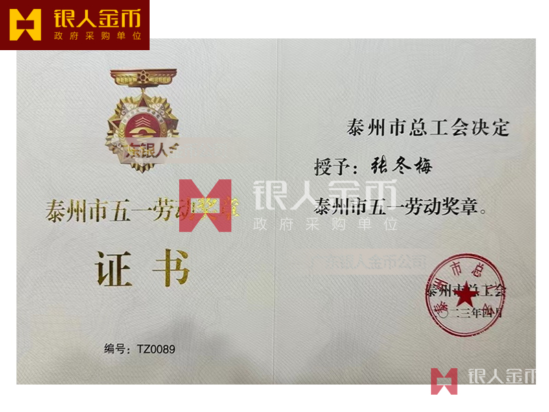 江蘇省泰州市總工會泰州市五一勞動模范獎?wù)?五一勞動獎狀,五一勞動獎牌,工人先鋒號獎牌證書(圖)