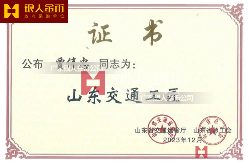 山東省交通廳山東交通工匠獎章獎牌證書(圖)