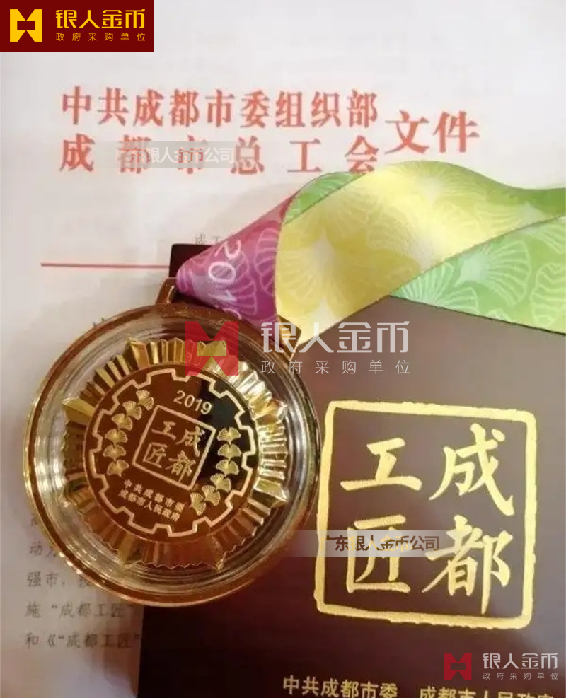 中共成都市委市政府市人社廳市總工會成都工匠獎章勛章成都工匠金牌獎牌證書(圖)