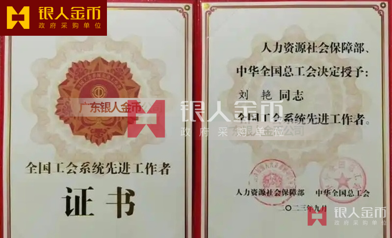 中華全國總工會全國工會系統先進集體獎牌證書和先進工作者全國優秀工會工作者獎章勛章紀念章證書(圖)