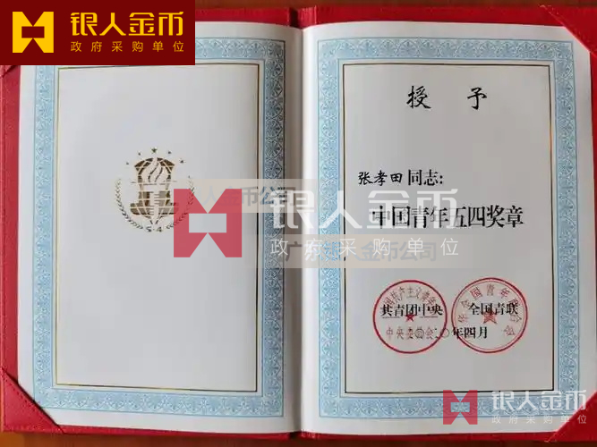 共青團中央辦公廳 全國青聯中國青年五四獎章證書和中國青年五四獎章集體獎牌證書(圖)