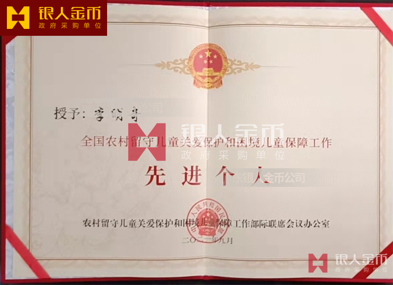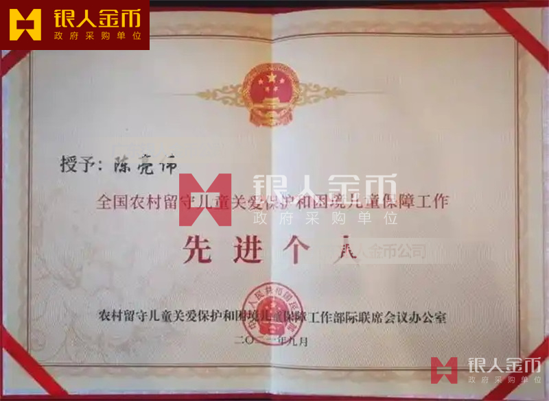 國務院全國農村留守兒童關愛保護和困境兒童保障工作先進集體獎牌證書和先進個人獎章紀念章勛章證書(圖)