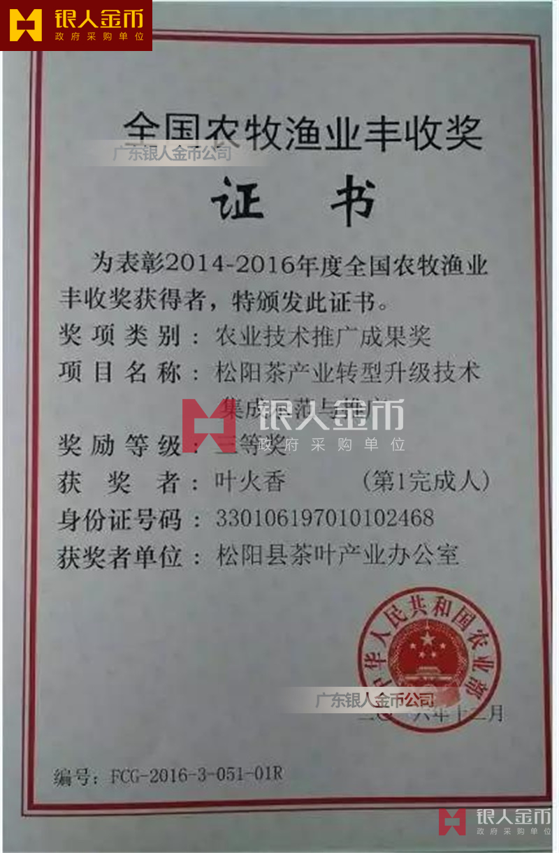 國家農村農業部全國農業技術推廣成果獎獎牌證書與農牧漁業豐收獎獎牌證書(圖)