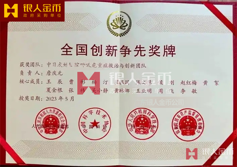 中華人民共和國(guó)科學(xué)技術(shù)部全國(guó)創(chuàng)新爭(zhēng)先獎(jiǎng)牌證書(圖)