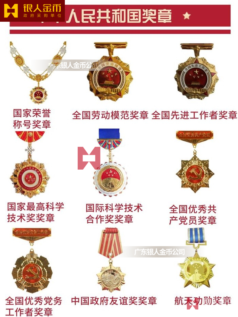 中共中央、國務院、中央軍委、中紀委、全國人大、全國政協、公安部、最高人民檢察院、最高人民法院、司法部、全國總工會頒發、授予和制定、監制與生產、制造及設計、加工、制作、公開的所有榮譽稱號、勛章、獎章、紀念章、證章、徽章圖錄大全,包括五章一簿(圖)