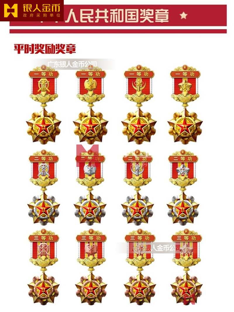 金星一等功獎章 銀星二等功獎章 銅星三等功獎章