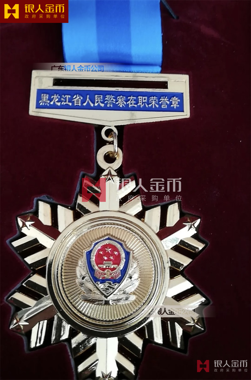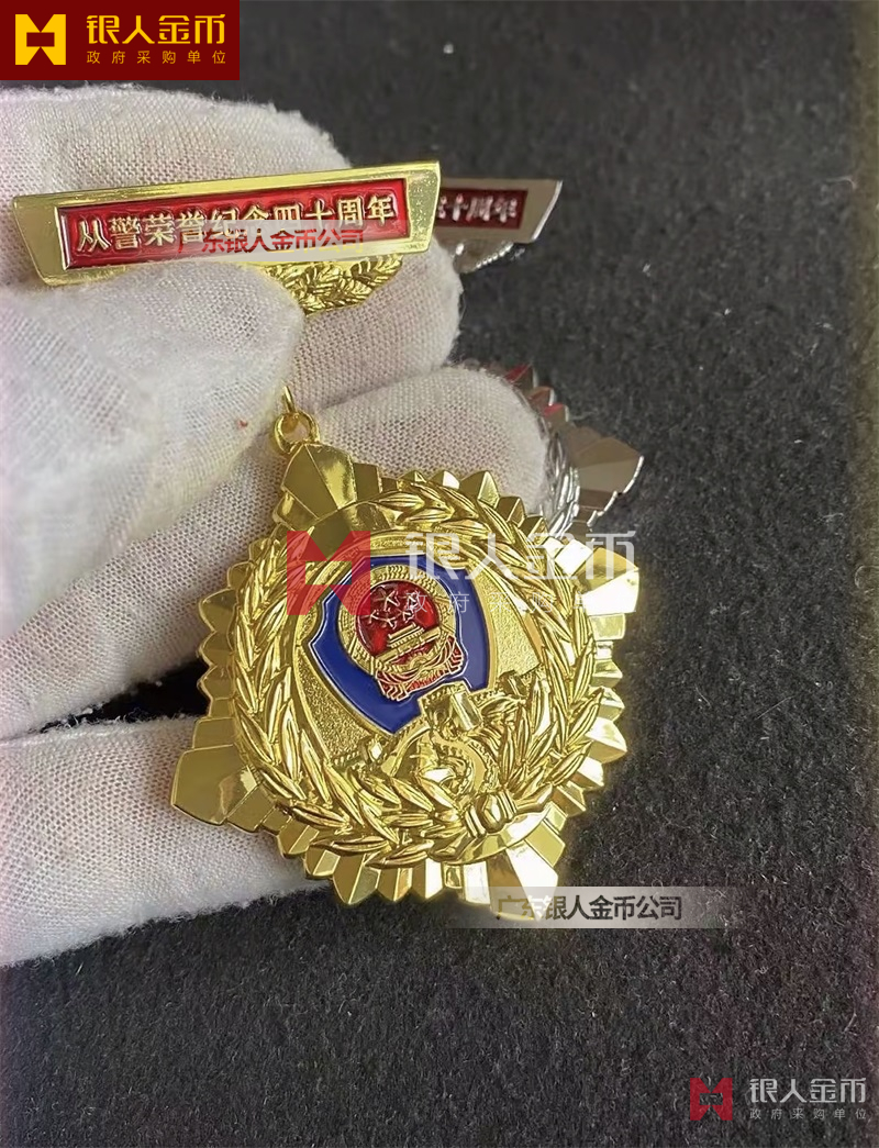 從警紀(jì)念章(公安勛章或警察勛章,也叫人民警察金盾獎(jiǎng)?wù)?/a>或金盾勛章),不僅是一件獎(jiǎng)品,更是一份承載著榮譽(yù)與責(zé)任的象征,它猶如一面鏡子,映射出警察職業(yè)的崇高與莊嚴(yán),也映射出每一位警察內(nèi)心深處的信念與堅(jiān)守。這款從警年限紀(jì)念章以金銀銅三色為主調(diào)分別代表不同入警時(shí)間,象征著警察職業(yè)的莊嚴(yán)與神圣。其造型獨(dú)特,融合了警徽、盾牌與時(shí)間的元素,警徽,代表著警察的身份與榮譽(yù),每一次佩戴,都是對(duì)職責(zé)的堅(jiān)守;盾牌,象征著保護(hù)與守護(hù),是警察們面對(duì)危險(xiǎn)時(shí)無畏前行的勇氣;而時(shí)間的流轉(zhuǎn),則見證了警察們從青澀到成熟,從熱血到沉穩(wěn)的蛻變。