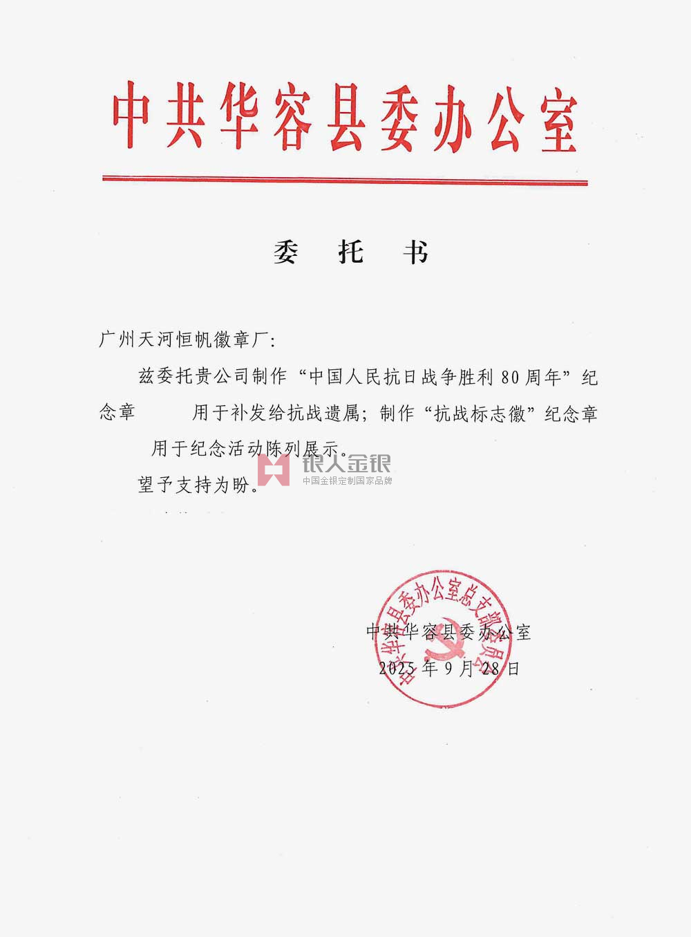 中共湖南省岳陽市華容縣委定制委托公函