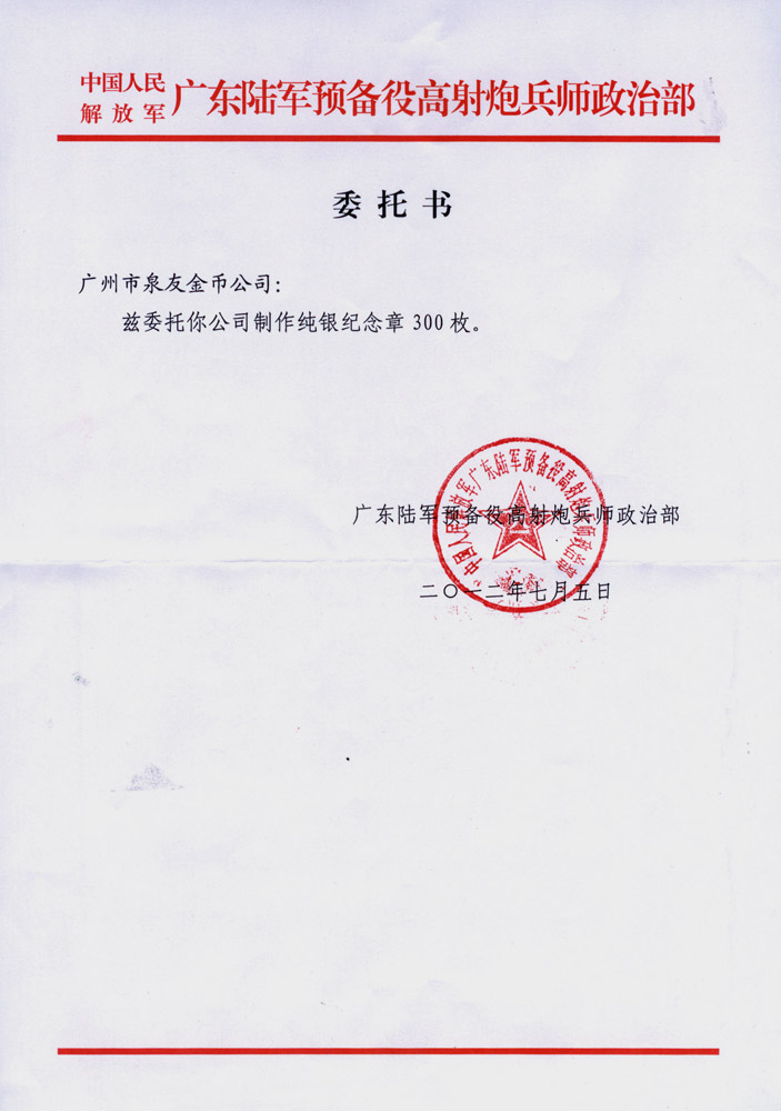 廣東省軍區某師公函