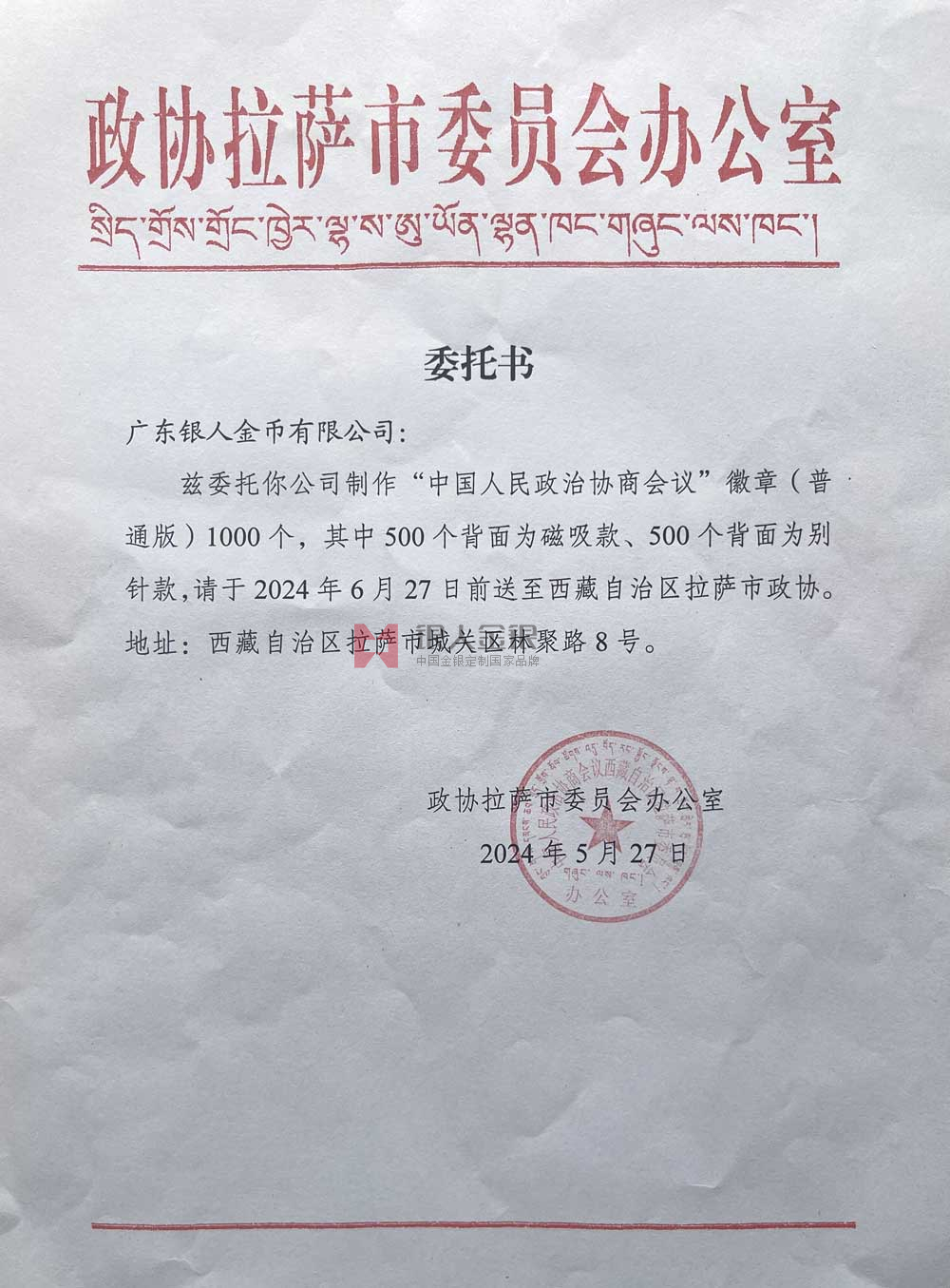 西藏拉薩市政協政協會徽生產制作定制制造公函