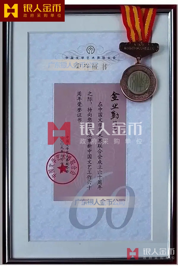 中國文聯(lián)從事新中國文藝工作六十年表彰紀(jì)念章獎(jiǎng)?wù)聞渍聵s譽(yù)證書(圖)