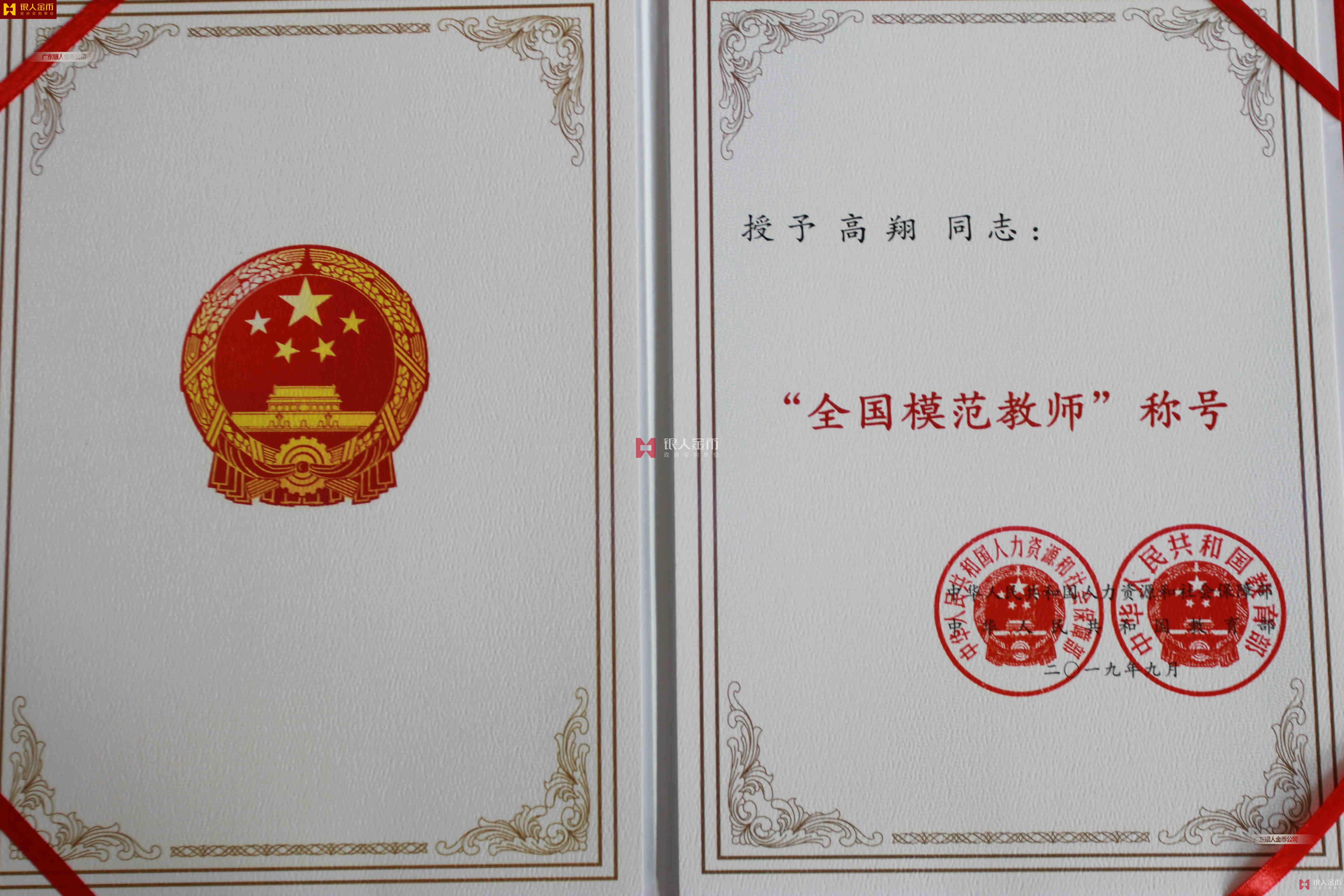教育部全國教育系統先進集體和全國教育系統先進工作者獎章、獎牌、證書(圖)