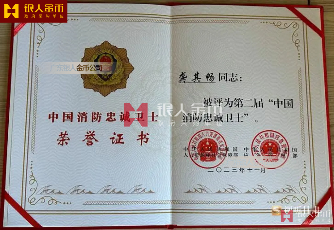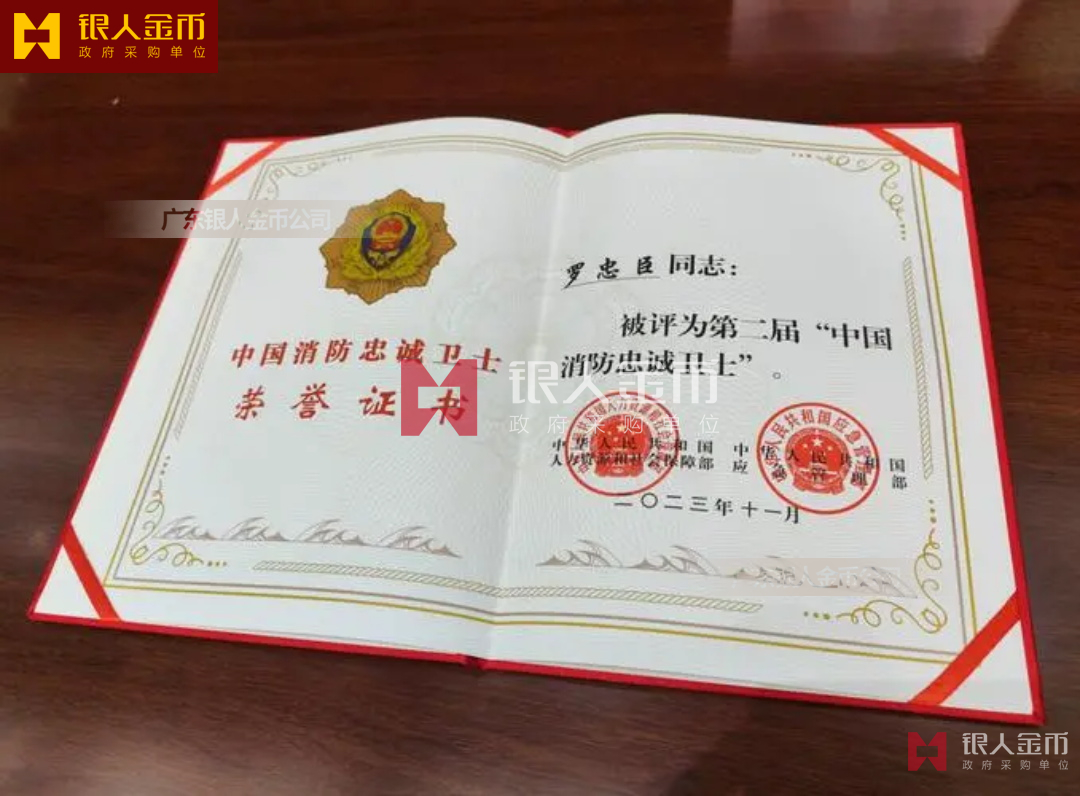 應急管理部中國消防忠誠衛士獎章與全國應急管理系統二級英雄模范獎章證書(圖)