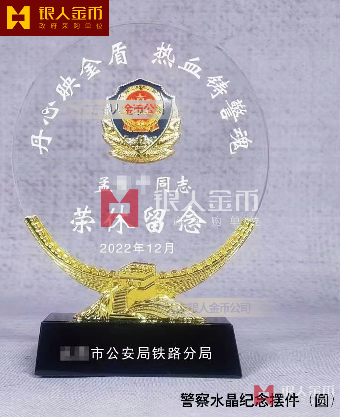 警察退休獎品,民警水晶獎杯,公安干警水晶獎牌擺件-【《公安機關人民警察榮譽儀式規范(試行)》】