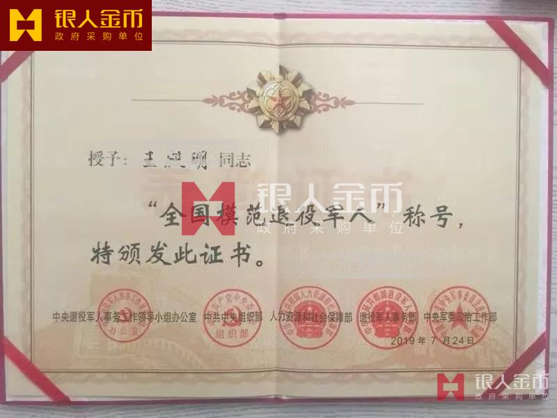 中央軍委政治部監制全國模范退役軍人獎章勛章紀念章證章徽章胸章獎牌證書(圖)-【制定標準】