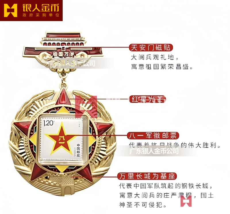 紀念章設計包含“80周年”字樣,象征對抗戰英雄的崇高敬意,尤其對高齡老戰士可能提供上門頒發服務。
