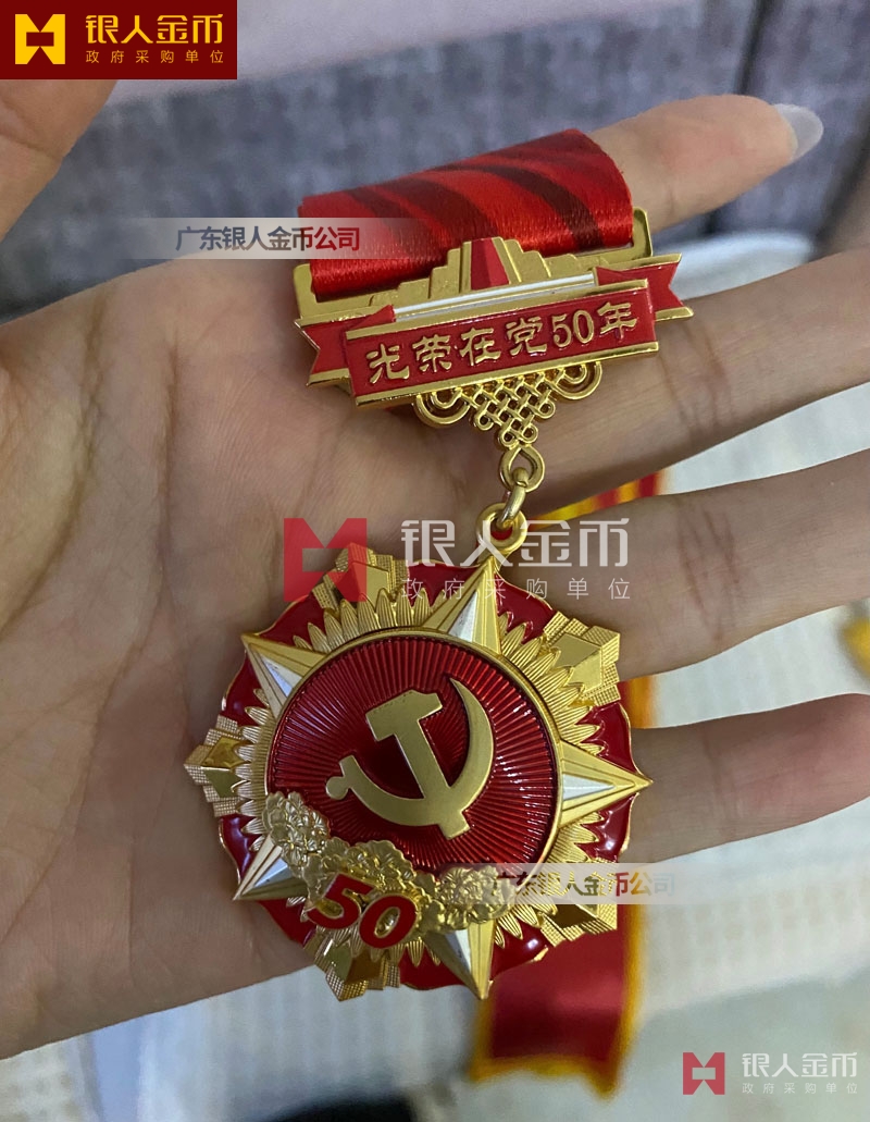 【入黨50年黨齡老黨員獎章】 徽章、證章、榮譽證書、定制