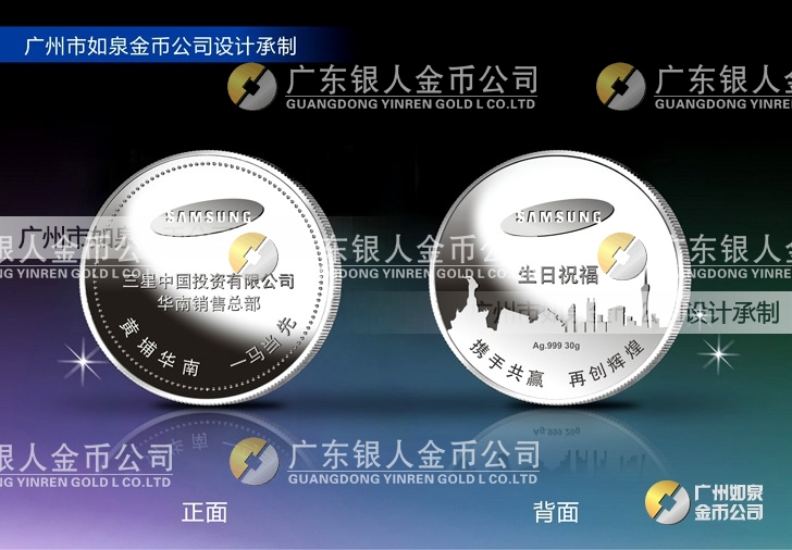 訂做三星電子中國(guó)公司純銀紀(jì)念幣,加工銀幣